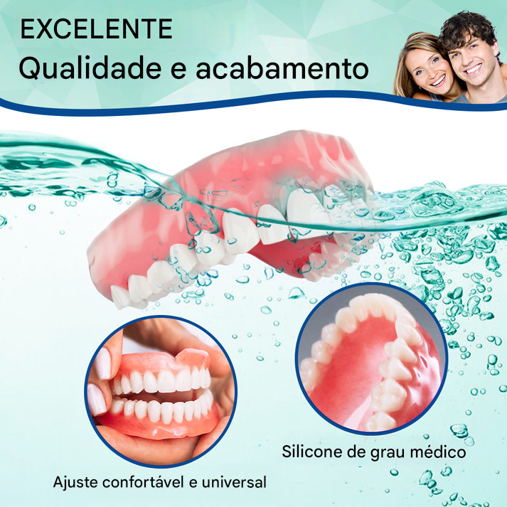 Uma vez ajustada, a prótese dentária Tiworld® - Premium proporciona um encaixe confortável e seguro, com sucção natural que a mantém no lugar.