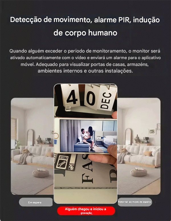 Detecção de movimento inteligente e alertas instantâneosNão perca nada importante. Receba alertas instantâneos e notificações push no seu celular assim que qualquer movimento for detectado.